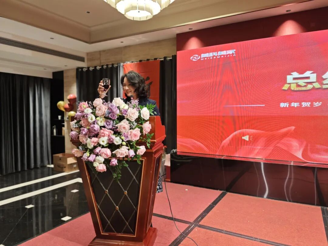 5时28分,晚宴在热烈的氛围中正式拉开帷幕。美科物业总经理陆美娟女士登台致辞,为整场晚宴注入温暖而坚定的力量。致辞中,陆总简要回顾了2025年公司走过的坚实历程,细数全体员工并肩作战所取得的亮眼成绩,每一份硕果都离不开每一位美科人的坚守与付出。她特别对奋战在一线的员工们给予了表扬与肯定,感谢大家以专业的服务、务实的作风,筑牢公司发展的根基;同时也对新一年的发展寄予殷切期望,鼓励全体美科人继续同心同德、笃行实干,以更饱满的热情奔赴新的征程,让美科物业在高质量发展的道路上稳步前行。