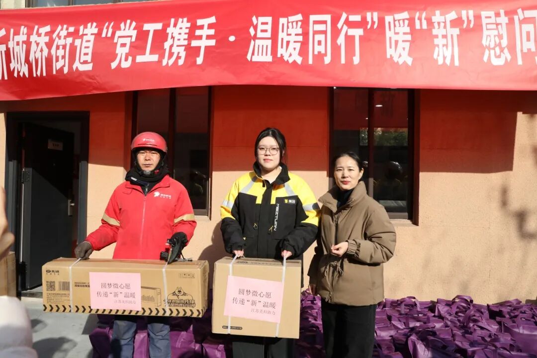 岁末冬寒,温情暖城。1月28日上午,新城桥街道“党工携手·温暖同行”暖心慰问活动如期启幕,为奔波在寒风中的新就业形态劳动者们送上新春祝福与冬日暖意。江苏美科物业积极响应街道号召,携冬日防寒物资倾力参与,以实际行动为一线劳动者撑起一片温暖。